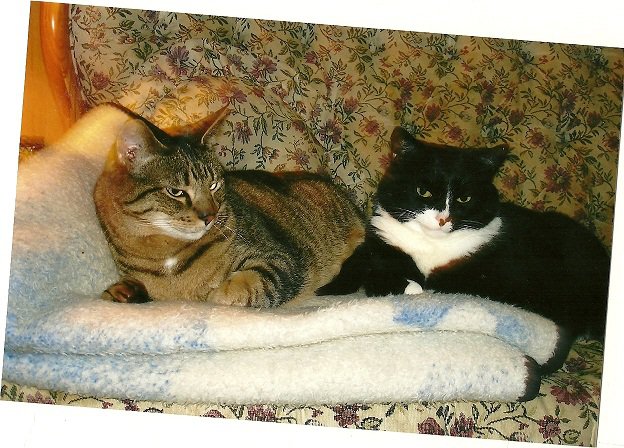 The first Christmas season here in Brooklyn, CT, I came home from shopping one afternoon to see a black-and-white tuxedo kitty running around the back of the house. My first thought was “That looks like Pazzy” but Paz, Woody, and Ariel, the three cats that shared our home back in 2001, were strictly indoor cats; I never let them outside so I simply assumed this was a stray that looked like Paz. I didn’t get that good of a look at him. So I went about my business of unloading the car and carrying my bags to the door. By the time I had opened it, the stray cat had completely slipped my mind except for a vague wish that he or she would not find Route 6 any time soon.
